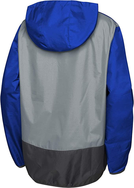Your youngster will get pumped up for the big game when you get them the Youth Toronto Blue Jays Wordmark Quarter Zip Windbreaker Hoodie. The team colours and bright graphics make this a must-have for the next ballgame.